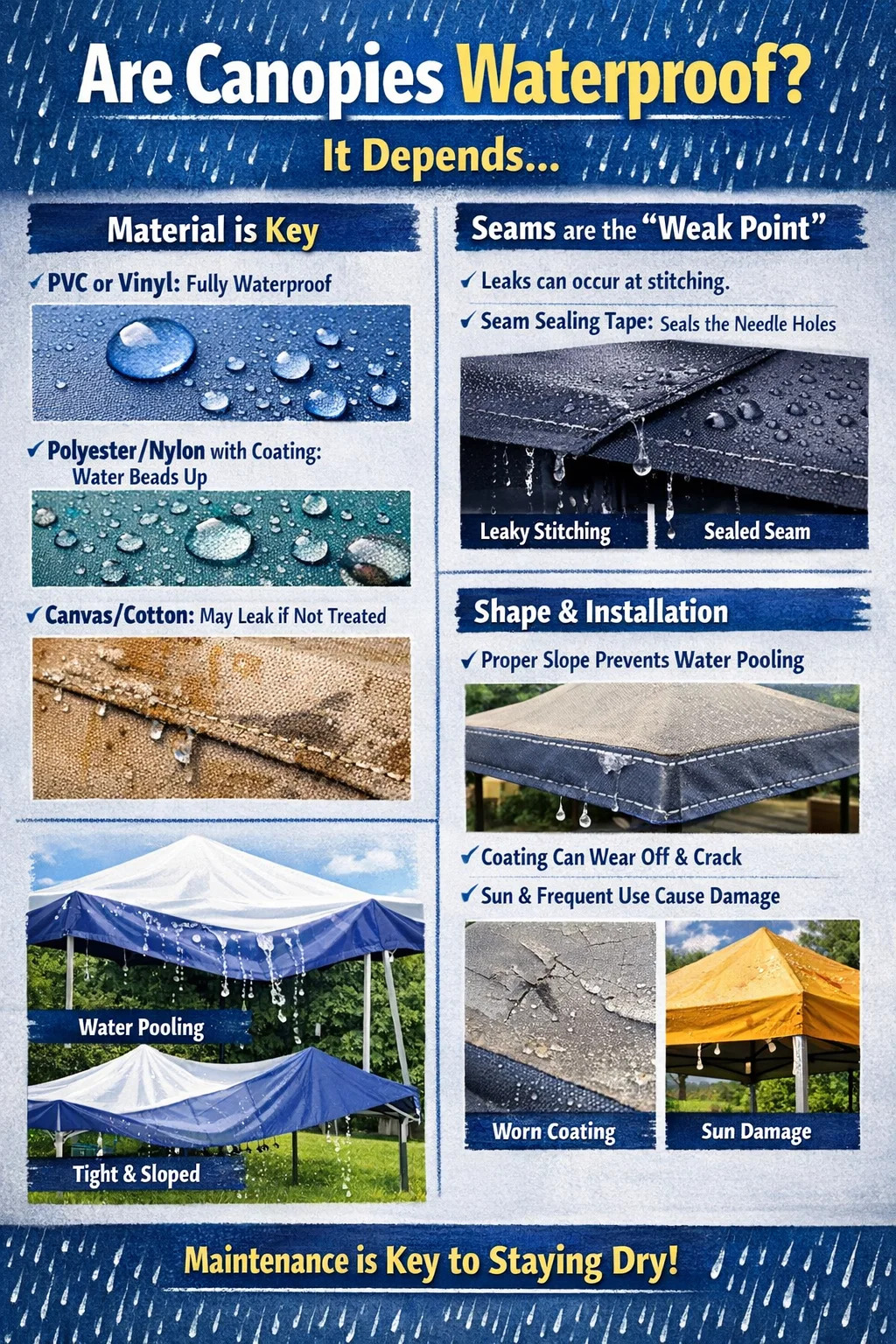 Incluso si la tela en sí es impermeable, las marquesinas tienen un área que fácilmente pasa desapercibida: las costuras: