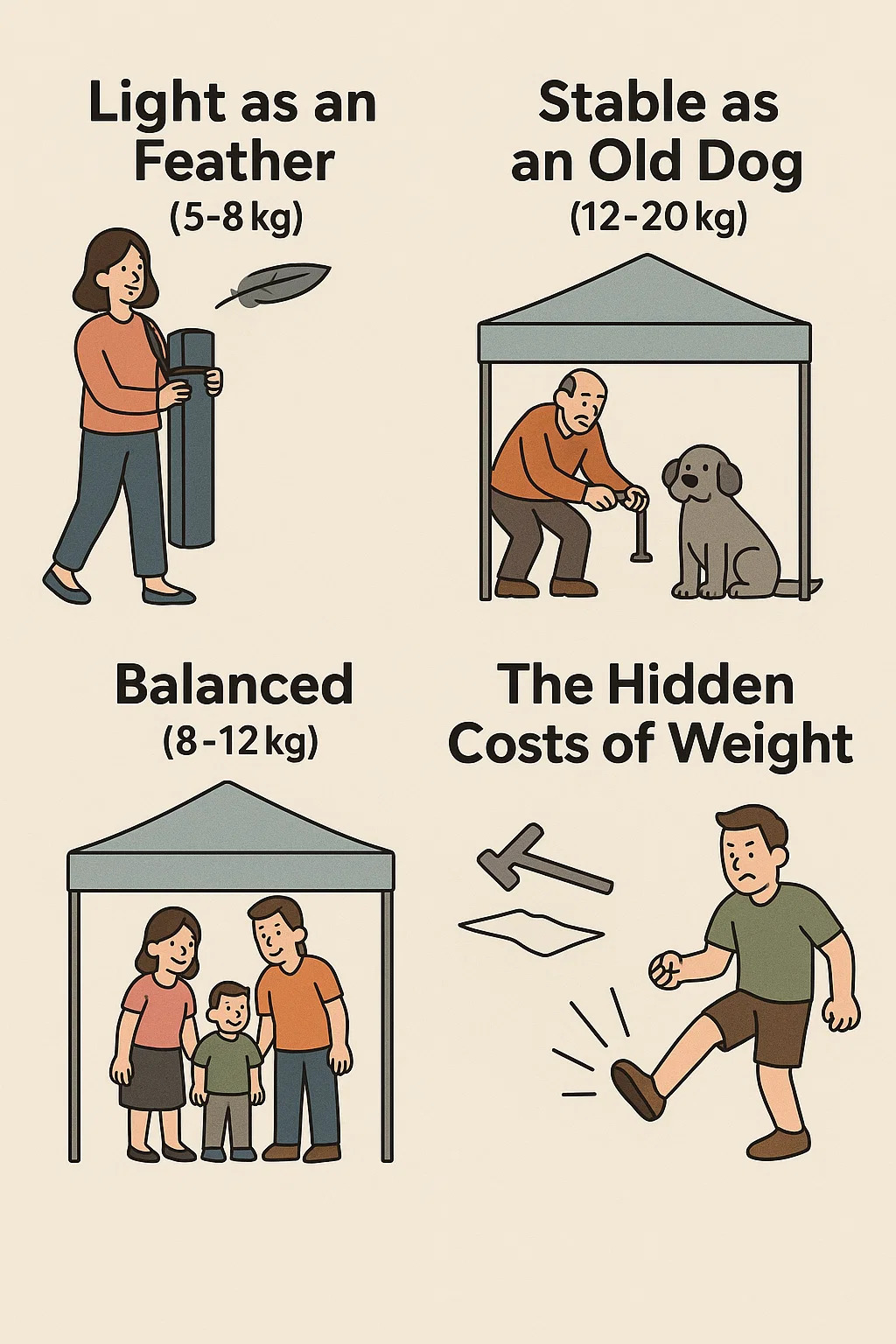 El peso de un pabellón No es solo una cuestión de números, se trata de cuánto esfuerzo está dispuesto a hacer para garantizar su estabilidad. Elegir el peso incorrecto puede provocar agotamiento o una lona que sopla.